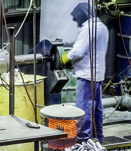 After the saw, the castings are deburred and ground to customer specifications. Drilling and tapping are performed, if needed.