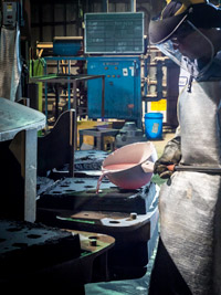 Our foundry’s melting department utilizes ten furnaces to melt metal. We have eight, 500lb, gas-fired, crucible furnaces for melting aluminum. From these furnaces, the molten metal is removed with a ladle and poured into the green sand or no-bake mold.